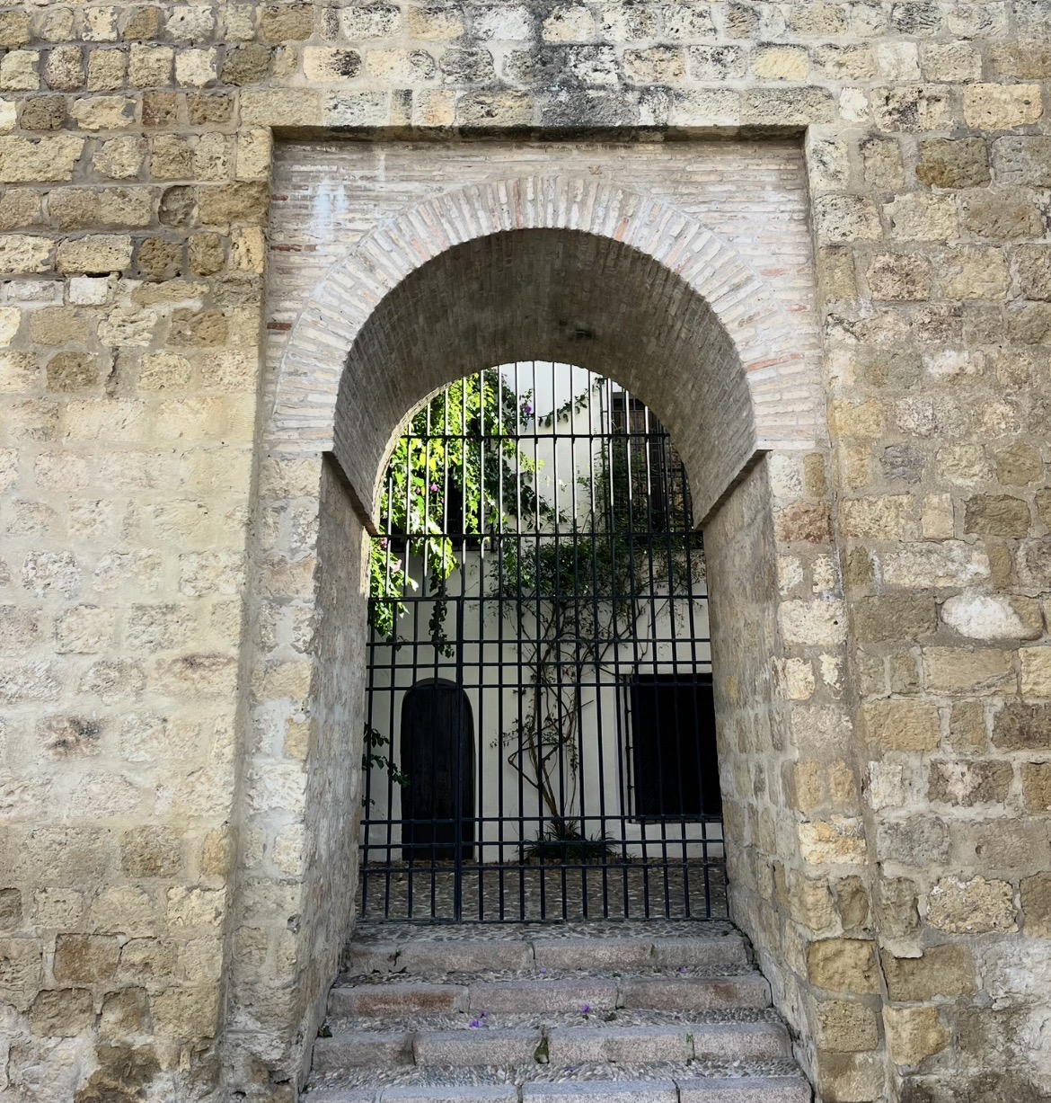 La imagen que acompaña este texto lo ilustra con fuerza: un arco de piedra sólido, hecho para durar, unos escalones que invitan a avanzar y, sin embargo, una reja que impide el paso. Detrás, se adivina la vida: la luz, la vegetación, el espacio habitable.